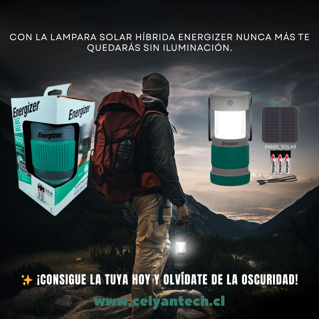 Linterna Solar Híbrido Energizer Recargable 500 Lúmenes – IPX4 Ultra Brillante